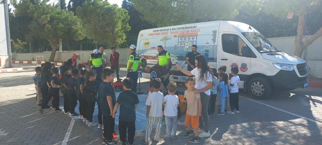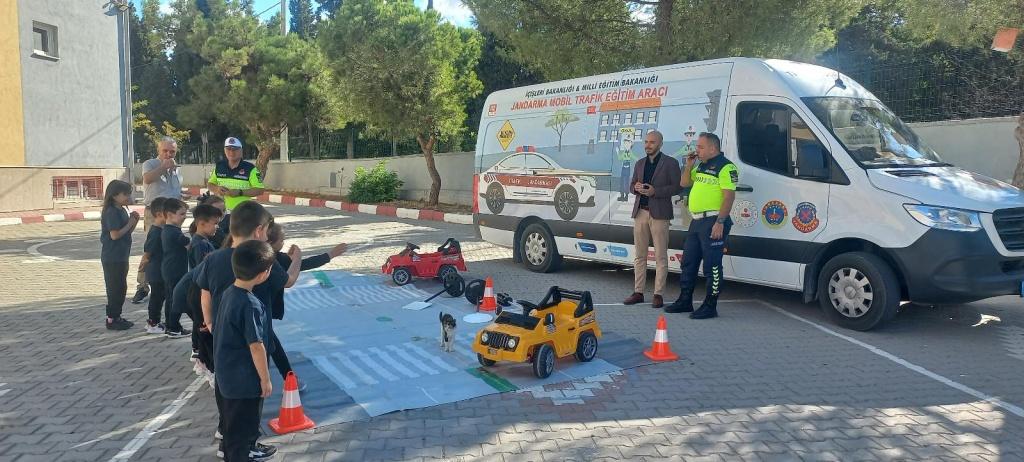 Bigadiç Jandarma Trafik Ekipleri, okulumuz öğrencilerini ziyaret ederek, trafik kuralları, yaya geçitlerini kullanma, bisiklet sürerken dikkat edilmesi gerekenler gibi konuları içeren eğitimler düzenledi. Eğitimler sırasında öğrencilere trafik levhaları, yaya geçidi boyama etkinlikleri ve trafik simülasyonları gibi interaktif yöntemler kullanıldı.